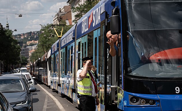 Teď jedou ti zprava. Příslušník policie řídil auta v centru Prahy. Nešly semafory. Jenže řidiči už význam jeho pokynů neznají.