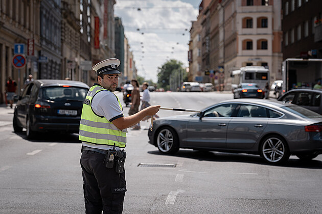 Teď jedou ti zprava. Příslušník policie řídil auta v centru Prahy. Nešly semafory. Jenže řidiči už význam jeho pokynů neznají.
