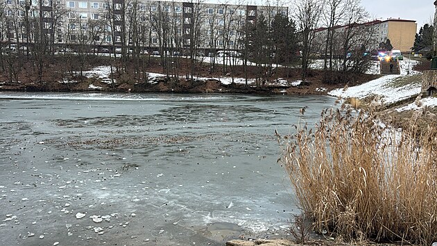 Na rybníku Aloisov v parku uprostřed pražského sídliště Černý Most se pod dvěma dětmi probořil led. Jsou v péči záchranářů. (21. února 2025)