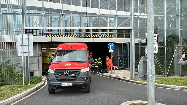 Pražští hasiči zasahovali v kancelářské budově v Nuslích v ulici 5. května, z důvodu přítomnosti nebezpečné chemické látky. (28. července 2025)