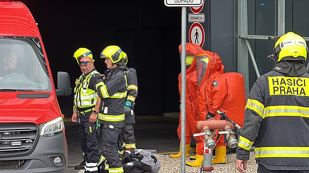 Pražští hasiči zasahovali v kancelářské budově v Nuslích v ulici 5. května, z důvodu přítomnosti nebezpečné chemické látky. (28. července 2025)