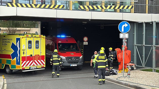 Pražští hasiči zasahovali v kancelářské budově v Nuslích v ulici 5. května, z důvodu přítomnosti nebezpečné chemické látky. (28. července 2025)