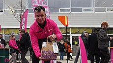 K výdejovému pultu přišel dvounohý kurýr Foodory. Otevírá prostorný batoh a ukládá do něj boxy s jídlem. „Jestli se bojím o práci? Pokud mi ji roboti vezmou, tak je zlomím,“ varuje smějící se muž.
