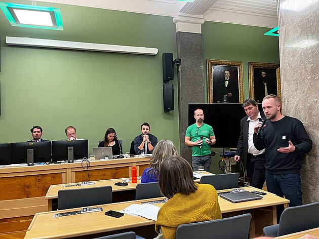Ondřej Rut, místostarosta P3 pro dopravu, na setkání obyvatel Řehořovy ulice kvůli klubu Sféra. (19. prosince 2024)