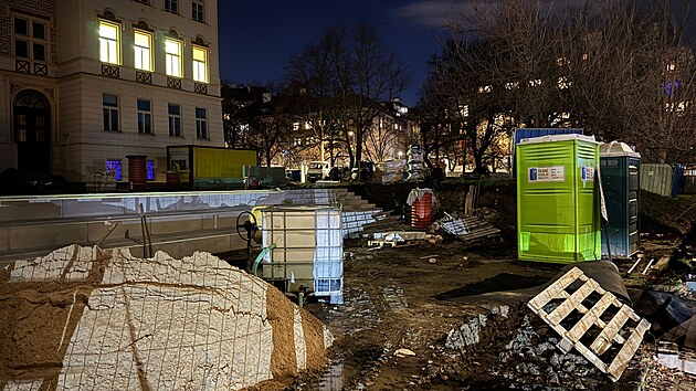Pražské policisty zalarmoval dělník, který na Nedvědově náměstí v centru města našel hrob s kosterními pozůstatky. (17. prosince 2024)