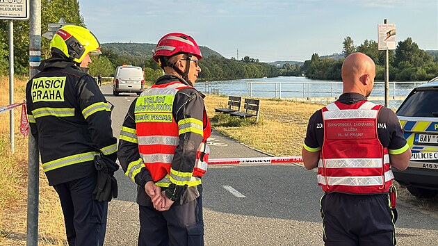 Policie prověřuje v Modřanech nález munice ve Vltavě. Na místě zasahuje i pyrotechnik. (13. července 2025)