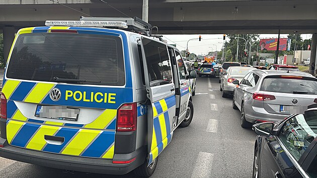 Havarovaná vozidla blokovala dopravu na Bucharově ulici. (15. června 2025)
