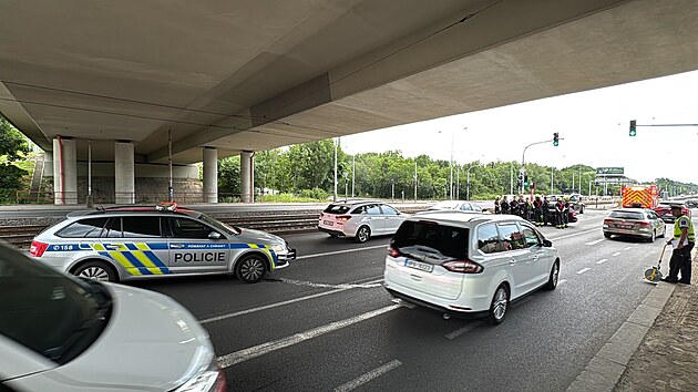 Havarovaná vozidla blokovala dopravu na Bucharově ulici. (15. června 2025)