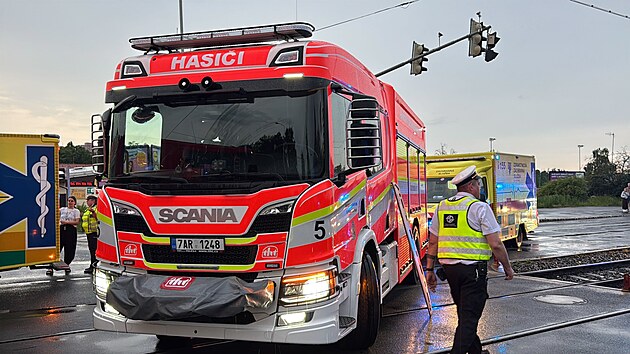 V Hostivaři se po srážce s jiným autem převrátila sanitka. (15. června 2025)