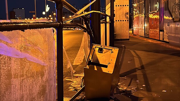 V ulici Novodvorská najel řidič na obrubník, auto skončilo na střeše. (10. prosince 2025)