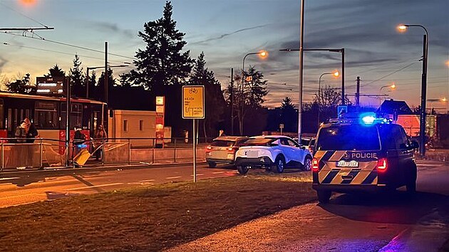 V ulici Novodvorská najel řidič na obrubník, auto skončilo na střeše. (10. prosince 2025)