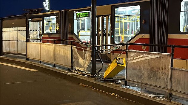 V ulici Novodvorská najel řidič na obrubník, auto skončilo na střeše. (10. prosince 2025)