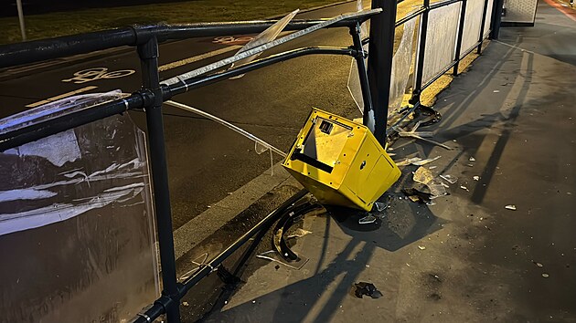 V ulici Novodvorská najel řidič na obrubník, auto skončilo na střeše. (10. prosince 2025)