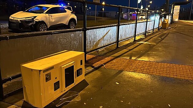V ulici Novodvorská najel řidič na obrubník, auto skončilo na střeše. (10. prosince 2025)