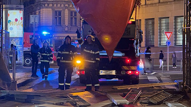 Řidič vozidla odtahové služby strhl v centru Prahy na Prašné bráně lešení. (2. listopadu 2024)