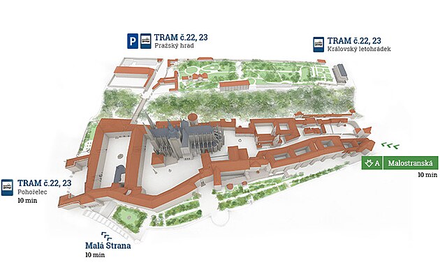 „Vstup do Královské zahrady je možný od Jízdárny Pražského hradu i od Královského letohrádku,“ doporučuje Hrad. Nejbližší zastávky těchto vchodů jsou Pražský hrad a Královský letohrádek.