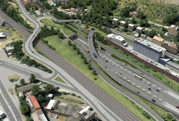Pohled na most rampy mimoúrovňové křižovatky na Zlíchově. (26.2.2018)
