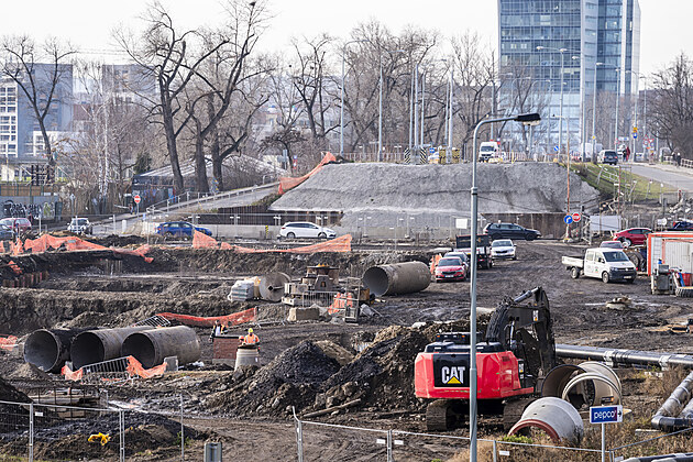 Proměna pražského Libeňského mostu v nadcházejících týdnech postoupí z demoliční fáze do stavební. Na snímku staveniště. (30. ledna 2025)