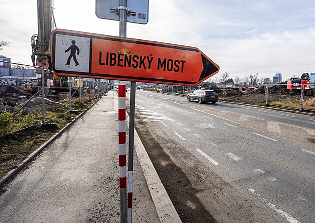 Proměna pražského Libeňského mostu v nadcházejících týdnech postoupí z demoliční fáze do stavební. Na snímku staveniště. (30. ledna 2025)