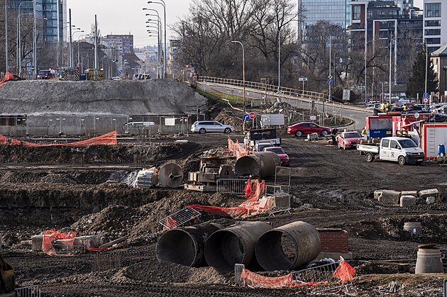Proměna pražského Libeňského mostu v nadcházejících týdnech postoupí z demoliční fáze do stavební. Na snímku staveniště. (30. ledna 2025)