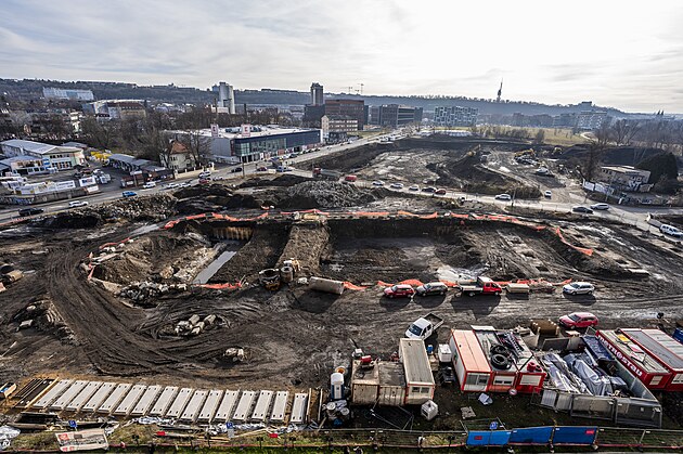 Proměna pražského Libeňského mostu v nadcházejících týdnech postoupí z demoliční fáze do stavební. Na snímku staveniště. (30. ledna 2025)