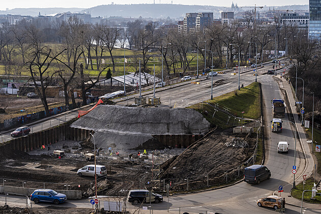 Proměna pražského Libeňského mostu v nadcházejících týdnech postoupí z demoliční fáze do stavební. Na snímku staveniště. (30. ledna 2025)