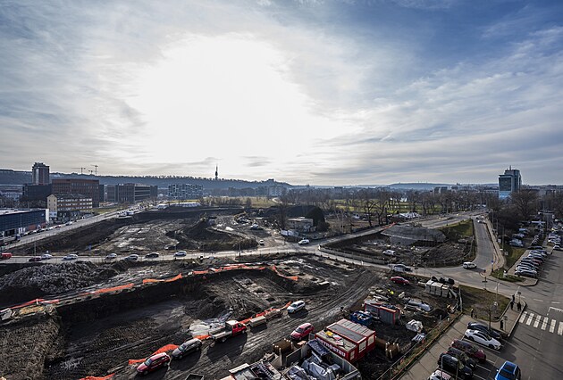 Proměna pražského Libeňského mostu v nadcházejících týdnech postoupí z demoliční fáze do stavební. Na snímku staveniště. (30. ledna 2025)