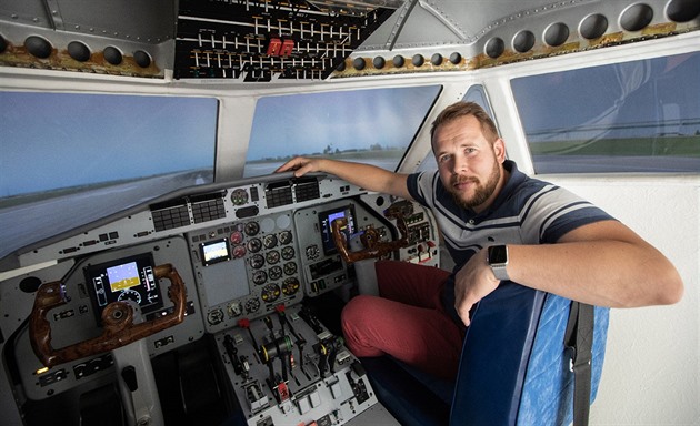 Je to české letadlo L-410 alias Turbolet. Vyrábí se už od nějakých šedesátých let v Kunovicích na Moravě. Náš kokpit je z opravdového letadla, které ale nikdy nelétalo. Sloužilo jako výcvikový trenažer německé armádě. Našli jsme ho v dost žalostném stavu právě na jednom německém letišti. Normální člověk by to asi nechal sešrotovat. Pavel ale kokpit dovezl a začali jsme ho dávat dohromady. Modernizovali jsme ho na současnou výrobní verzi a ve chvíli, kdy získáme certifikaci, bude sloužit i profesionálním pilotům pro výcvik.