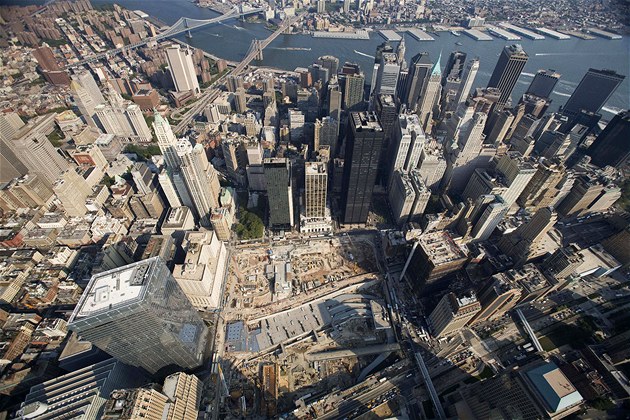 Pohled na Ground Zero ze střechy One World Trade Centre.