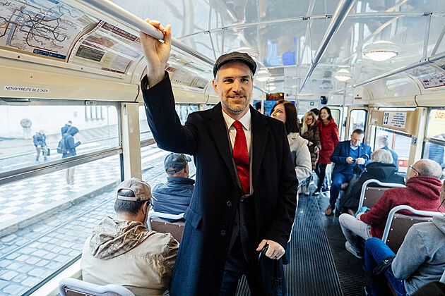 Zdeněk Hřib (Piráti) jede na schůzku s prezidentem tramvají. (6. října 2025)