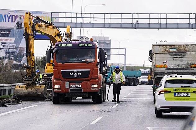 Na Pražském okruhu v úseku od ústí Lochkovského tunelu ke sjezdu na Slivenec začala v pondělí po zimní přestávce druhé polovina výměny povrchu vozovky. (31. března 2025)
