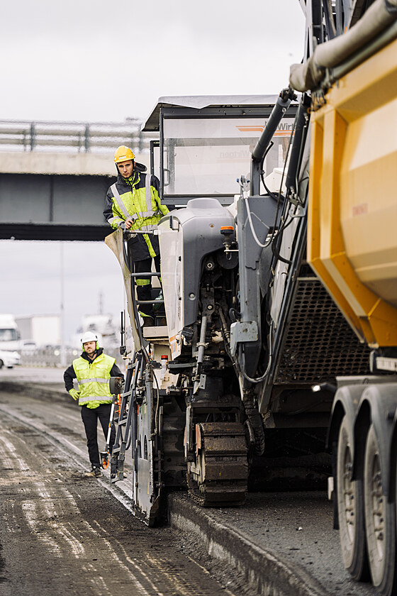 Na Pražském okruhu v úseku od ústí Lochkovského tunelu ke sjezdu na Slivenec začala v pondělí po zimní přestávce druhé polovina výměny povrchu vozovky. (31. března 2025)