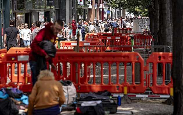 Horní část Václavského náměstí je už rok kompletně rozkopaná. (23. června 2025)