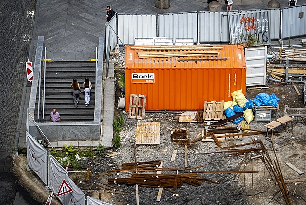 Horní část Václavského náměstí je už rok kompletně rozkopaná. (23. června 2025)