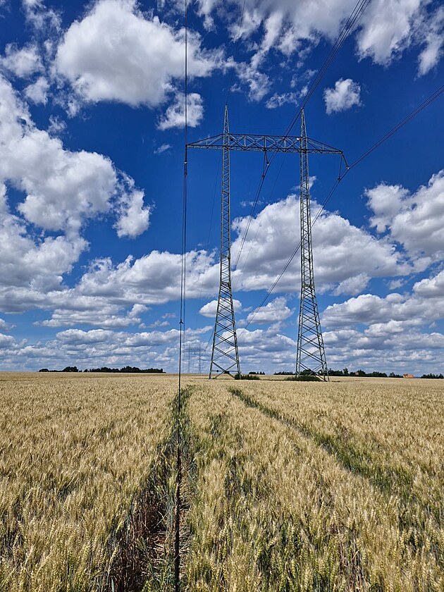 Spadlý fázový vodič na vedení V411, který byl prvotní příčinou výpadku dodávek elektrické energie. (4. července 2025)