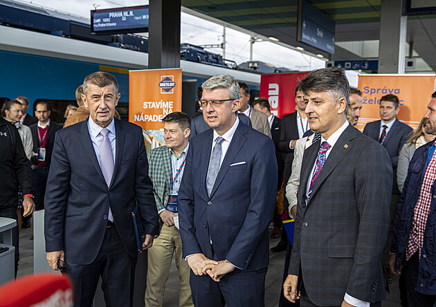 Nádraží Praha-Zahradní Město otevřel premiér Andrej Babiš, viceministr Karel Havlíček a ředitel Správy železnic Jiří Svoboda. (24.9.2021)