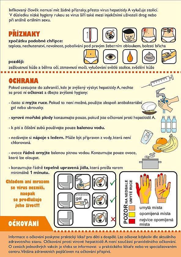 Leták informující o prevenci proti hepatitidě A od Státního zdravotního ústavu.