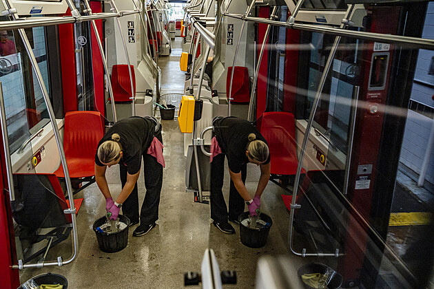Tramvaje zajíždějí do myčky několikrát týdně. DPP čistí vnitřní prostory vozů každý večer a jednou měsíčně tramvaje procházejí rozsáhlým čištěním. (7. července 2025)
