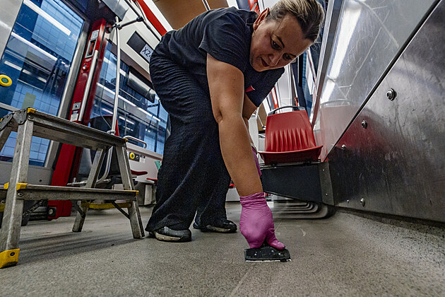 Tramvaje zajíždějí do myčky několikrát týdně. DPP čistí vnitřní prostory vozů každý večer a jednou měsíčně tramvaje procházejí rozsáhlým čištěním. (7. července 2025)