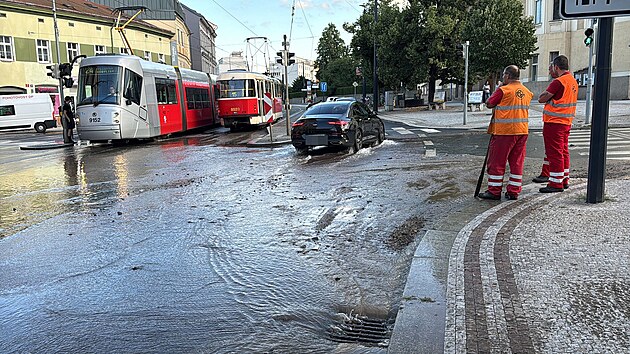 Havárie vody poškodila komunikaci u Úřadu městské části Praha 8. (29. července 2025)