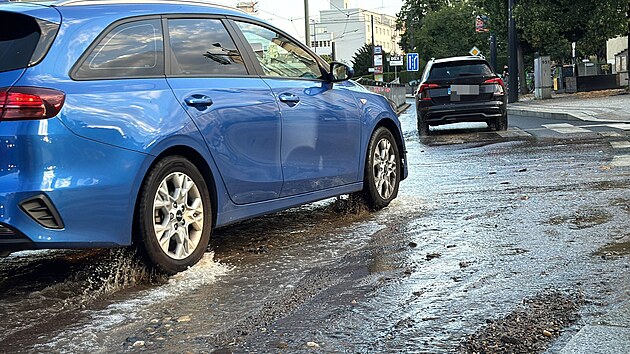 Havárie vody poškodila komunikaci u Úřadu městské části Praha 8. (29. července 2025)