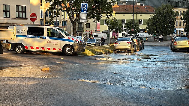 Havárie vody poškodila komunikaci u Úřadu městské části Praha 8. (29. července 2025)