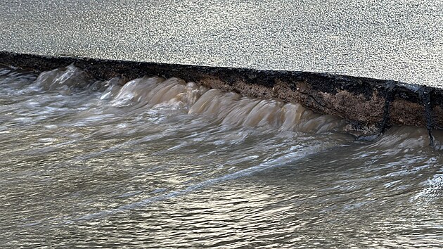 Havárie vody poškodila komunikaci u Úřadu městské části Praha 8. (29. července 2025)