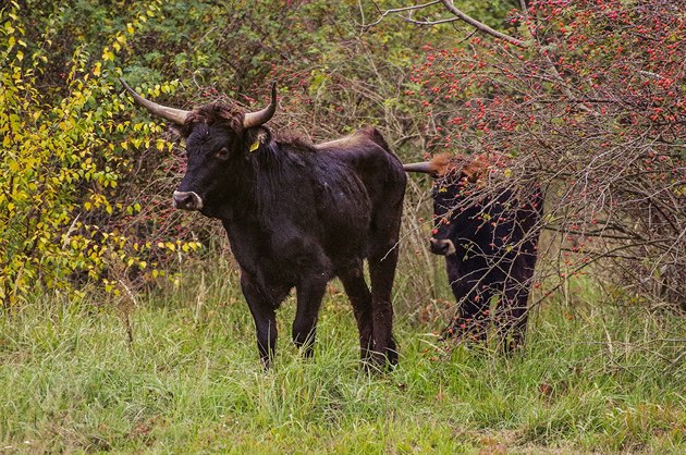 Spolu s první skupinou divokých koní nyní obývají území u Milovic i zpětně vyšlechtění pratuři z Nizozemska.