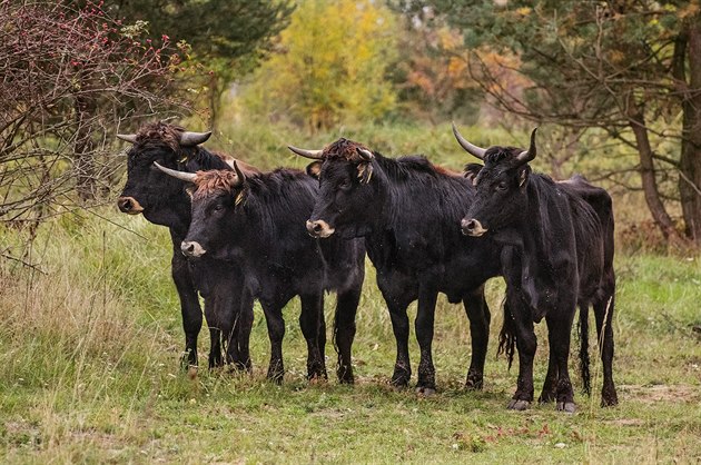 Spolu s první skupinou divokých koní nyní obývají území u Milovic i zpětně vyšlechtění pratuři z Nizozemska.