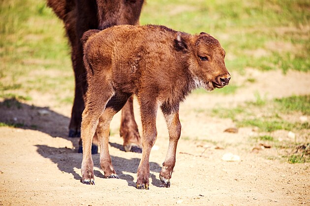 Zubři v Přírodní rezervaci Milovice. V roce 2023 se narodilo již 8 zubřích mláďat.