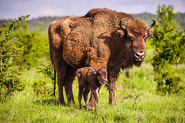 Zubři v Přírodní rezervaci Milovice. V roce 2023 se narodilo již 8 zubřích mláďat.