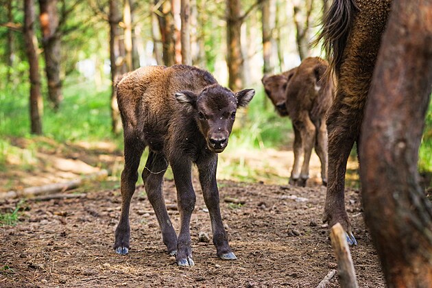 Zubři v Přírodní rezervaci Milovice. V roce 2023 se narodilo již 8 zubřích mláďat.