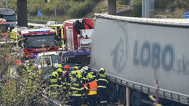 Hromadná nehoda zavřela Pražský okruh ve směru na Brno. (10. dubna 2025)