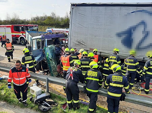 Hromadná nehoda zavřela Pražský okruh ve směru na Brno. (10. dubna 2025)